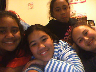 As we walked through the door Ashleigh came up to us and said "Hi". Ashleigh stayed down stairs for a while when we all walked up the stairs to her bedroom. I set up my present that I had brought her on the dresser. Huelo-ata came knocking on the door a couple of minutes later. We were all here and ready for our 6:30 movie.